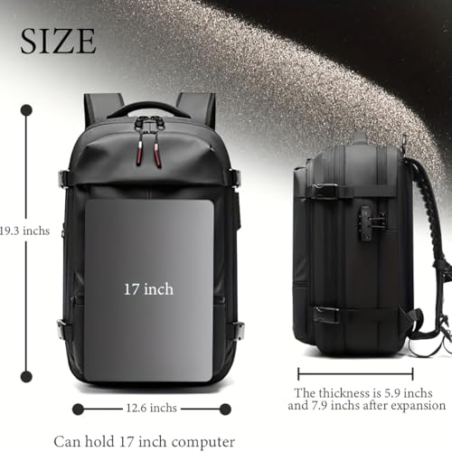 More information about 60L Vacuum Backpack Travel with Pump - 2025 Upgrade 24 Inch Suitcase Capacity, Vacuum Seal Storage, Compression System, Anti-Theft Laptop Backpack + Free Rain Cover