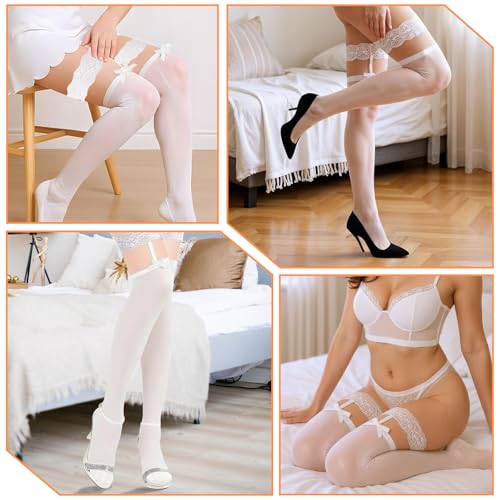 • 【Elegant and Charming】: Embrace sheer elegance with these captivating thigh-high stockings. Infused with romantic lace and delicate details, they offer unparalleled comfort and a touch of femininity. Adorned with charming lace loops, dainty sock suspenders, and bows that create mesmerizing 3D effects, these lingerie stockings effortlessly capture attention, reflecting your refined taste.