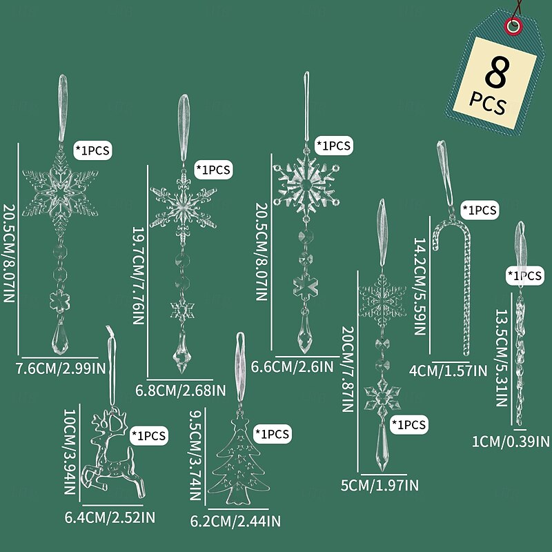 $11.49 - 8pcs Christmas Tree Decoration Crystal Ornaments - Hanging Acrylic Christmas Snowflake Icicle Drop Crystal Ornaments for Xmas Tree Winter New Year Party Supplies 2025. Shop for cheap Ornaments online? Buy at lightinthebox.com on sale today!