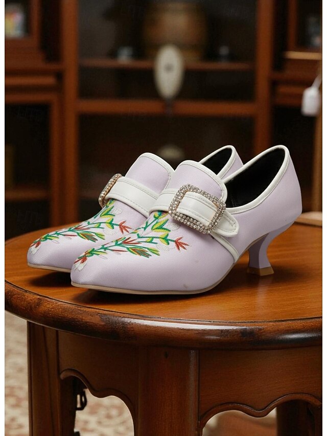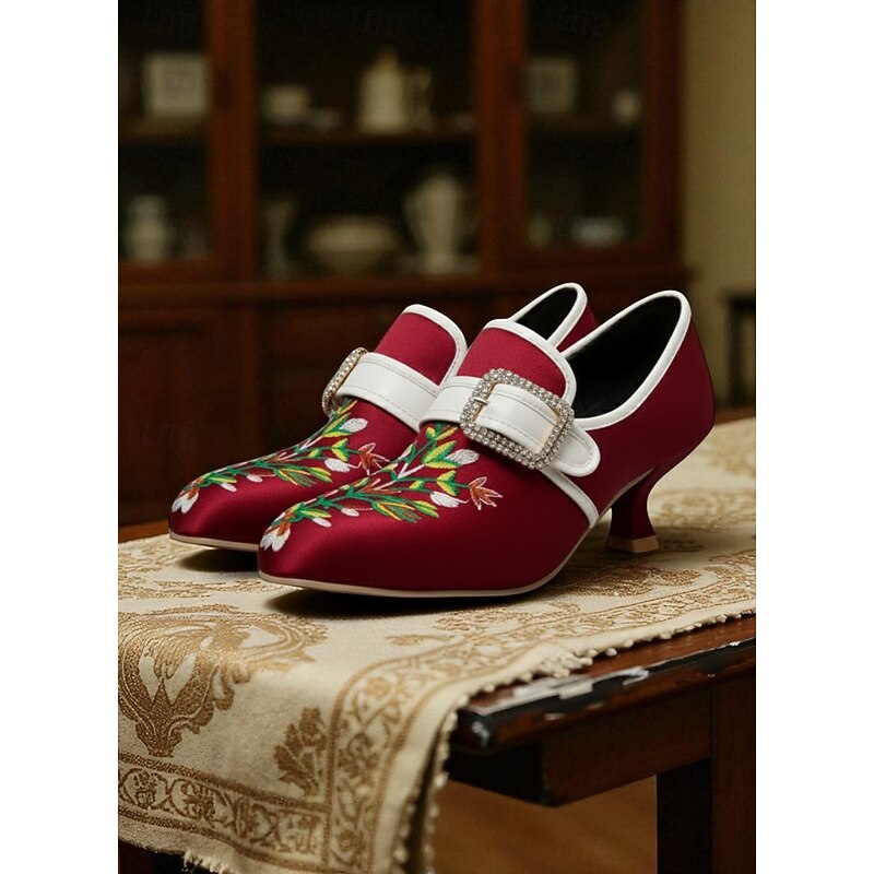 Why Choose Women's Black Vintage Embroidered Kitten Heel Shoes with Rhinestone Buckle – Elegant Floral Court Pumps for Retro Outfits, Costume Shoes and Gatsby Parties?