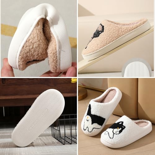 • Cute Cat Embroidery Design: The white plush upper features an adorable black-and-white cat embroidery that adds a playful touch to your home footwear.