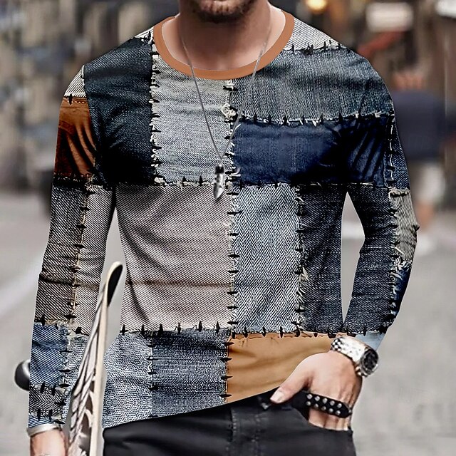 More information about Men's Geometric T Shirt Long Sleeve T shirt 3D Print Crew Neck Shirt Daily Designer Street Casual Yellow Blue Purple Summer Spring Fall Clothing Apparel S M L XL XXL XXXL
