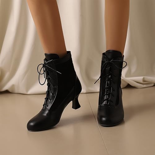 HOT ! Women's Leather Lace up Victorian Kitten Heel Ankle Boots Comfortable Round Toe Embroidered Breathable Non Slip Vintage Booties for Party Prom Evening Witch Boots