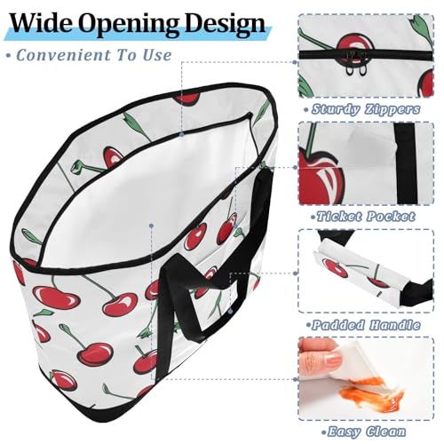 HOT ! Large Insulated Tote Bag Cute Cherry White for Grocery Shopping Reusable Tote Bags for Women Men, Cooler Bag with Zippered Top & Handles for Beach Picnic Travel