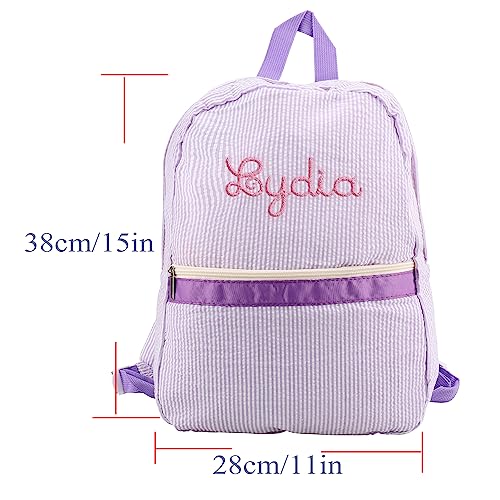 HOT ! Personalized Backpack Embroidered Name Seersucker Preppy Backpack Aesthetic Backpack Cream Backpacks Mini Backpack
