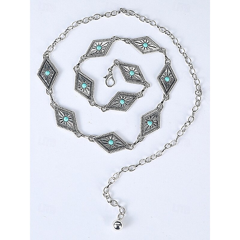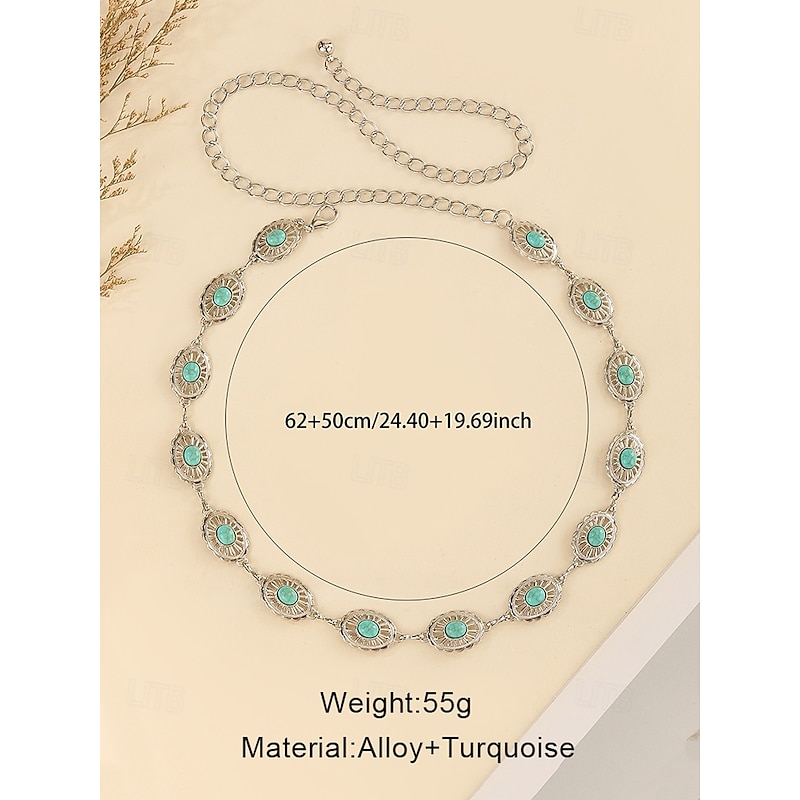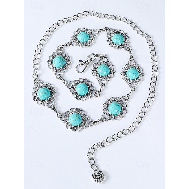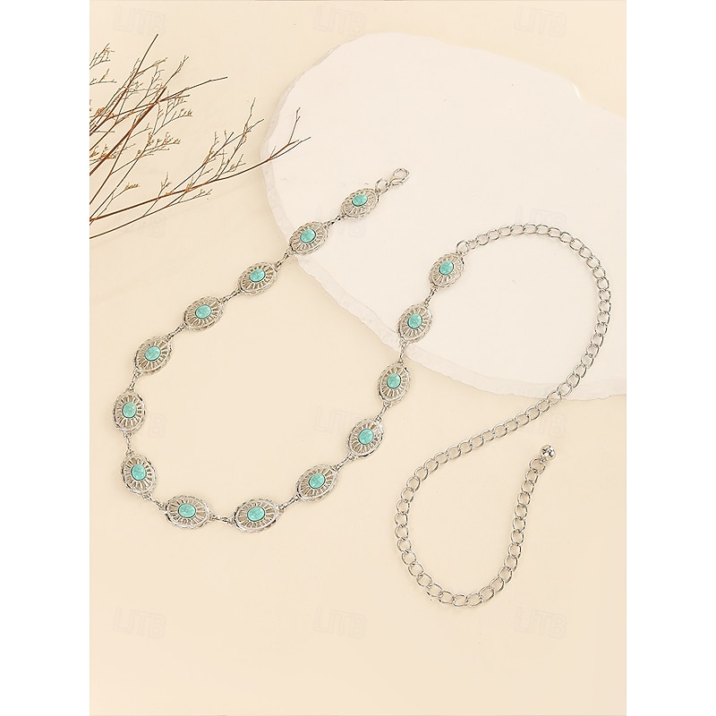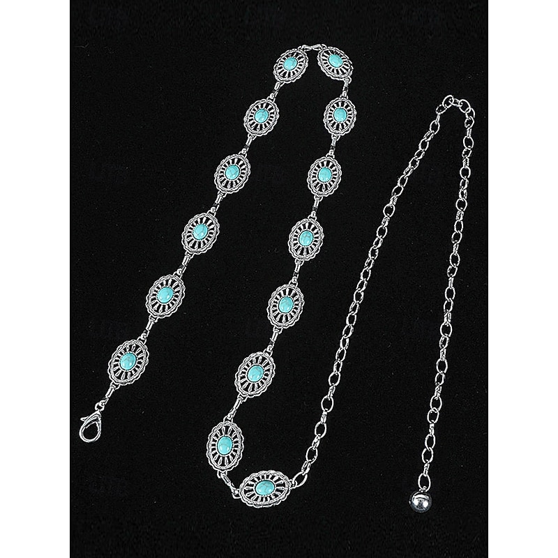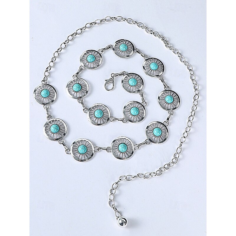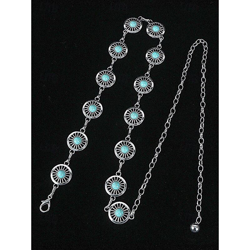 $11.99 - Women's Turquoise Concho Chain Belt – Vintage Boho Style Adjustable Western Waist Jewelry for Dresses Festivals and Parties 2025. Shop for cheap Women's Belt online? Buy at lightinthebox.com on sale today!
