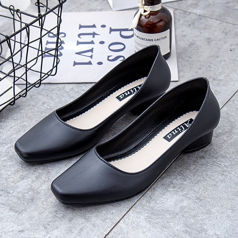 HOT ! Women's Black Low Heel Pumps – Classic Round Toe Slip-On Shoes for Office, Work, and Formal Occasions