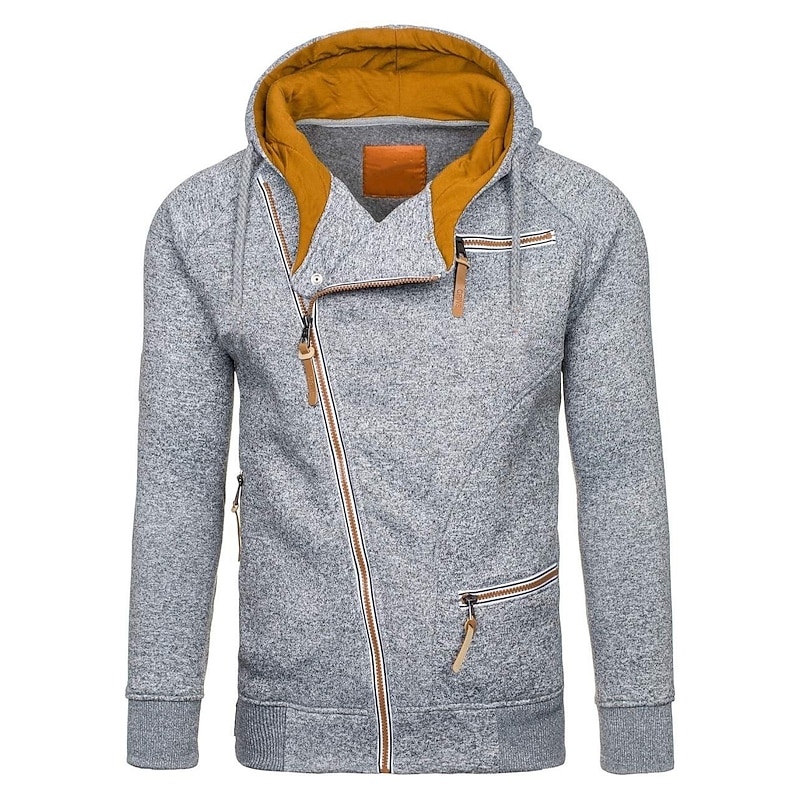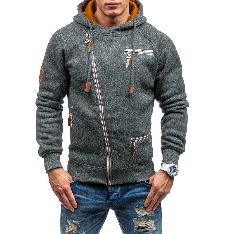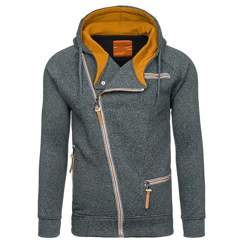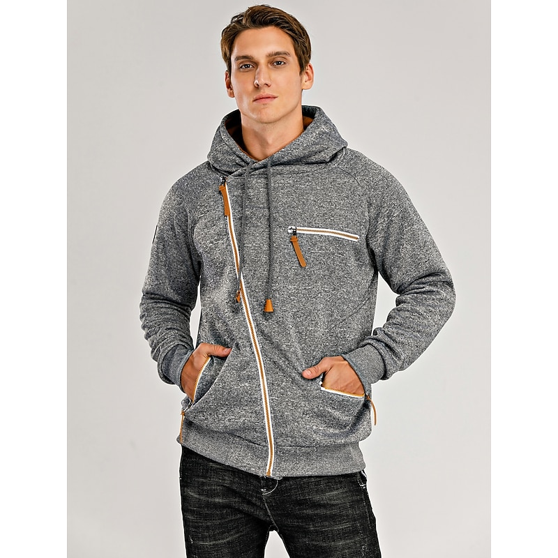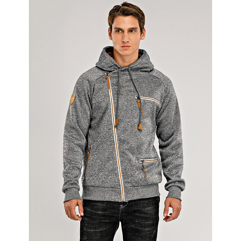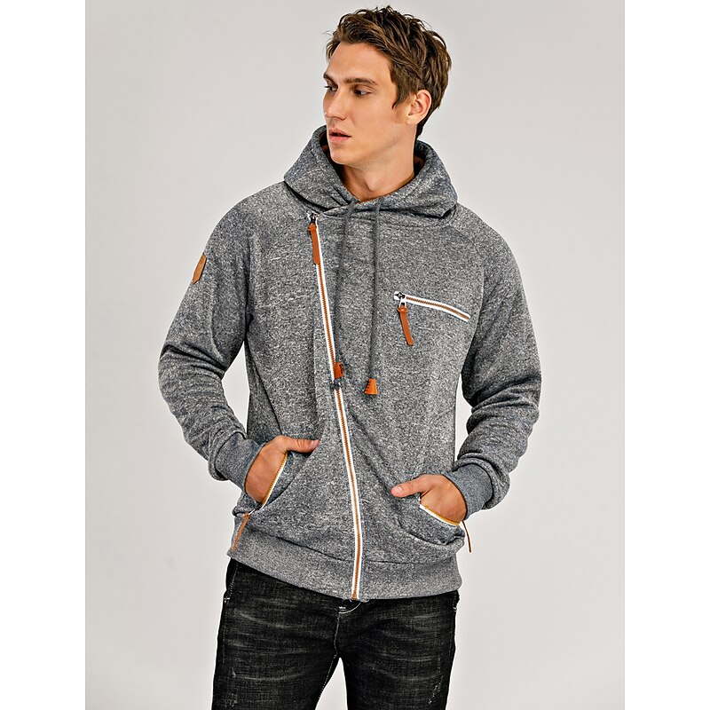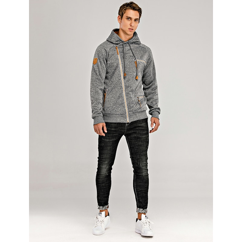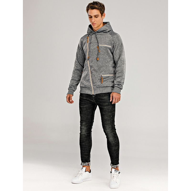 More information about Men's Zip Up Sweatshirt Sweat Jacket Black Light Grey Dark Gray Hooded Solid Color Casual Streetwear Polyester Cool Fall Winter Clothing Apparel Hoodies Sweatshirts Long Sleeve Slim
