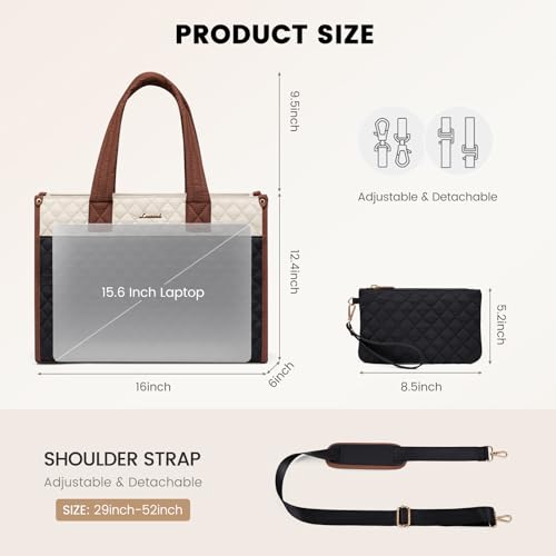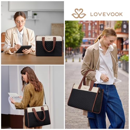 LOVEVOOK Laptop Bag for Women,15.6 Inch Laptop Tote Bag,Quilted Work Tote Bags Women, Professional Computer Business Teacher Tote Bag Office Briefcase Purse,Lightweight Shoulder Travel