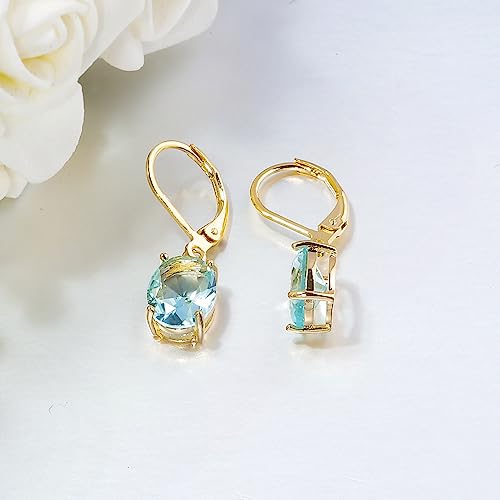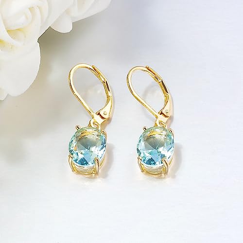 • Cut-Oval Drop Earrings for Women: Cut-Oval leverback dangle earrings add style and elegance to your looks. Easy to match costume. Fashion pendant earrings made of high quality 14K gold plated brass and light blue oval shape cubic zircon, hypoallergenic