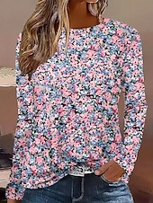 More information about Women's T Shirt Ombre Floral Graphic Vintage Stylish Classic Long Sleeve Crew Neck Round Neck Regular Tops Daily Print Pink Blue Spring Fall Winter