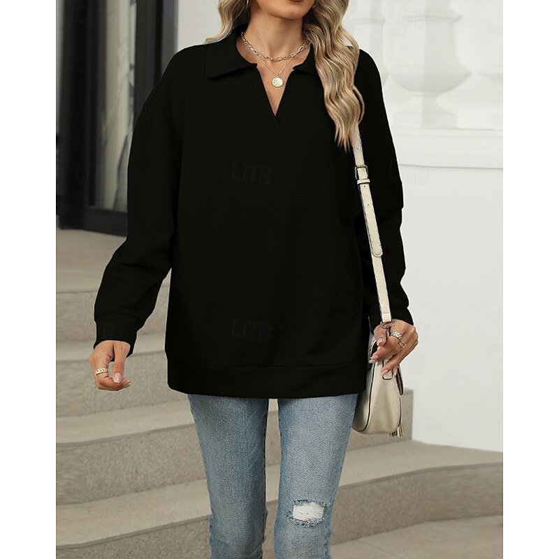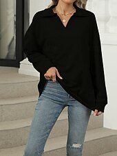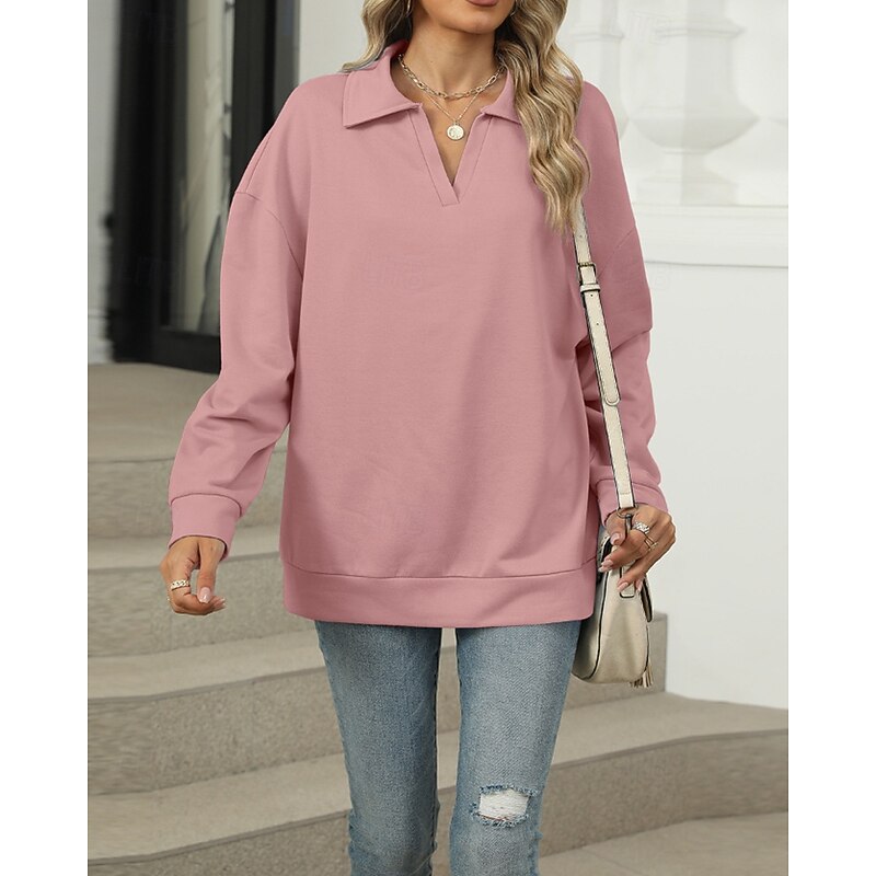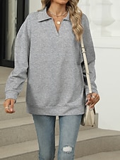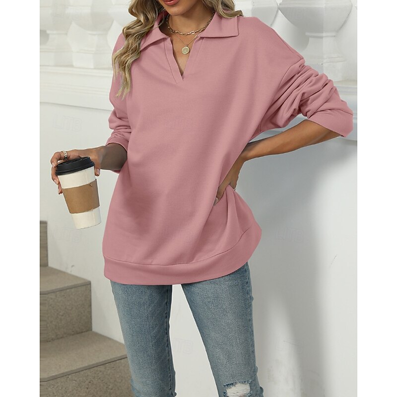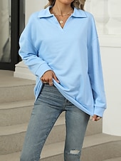 More information about Women's Pullover Sweatshirt Sweatshirts Plain Streetwear Casual Long Sleeve V Neck Regular Tops Street Holiday Going out Black Pink Light Grey Light Blue Fall Winter