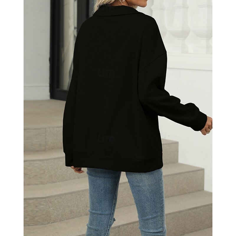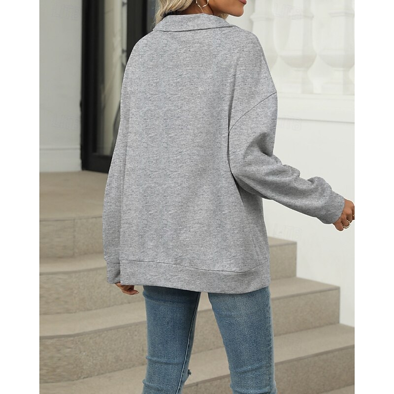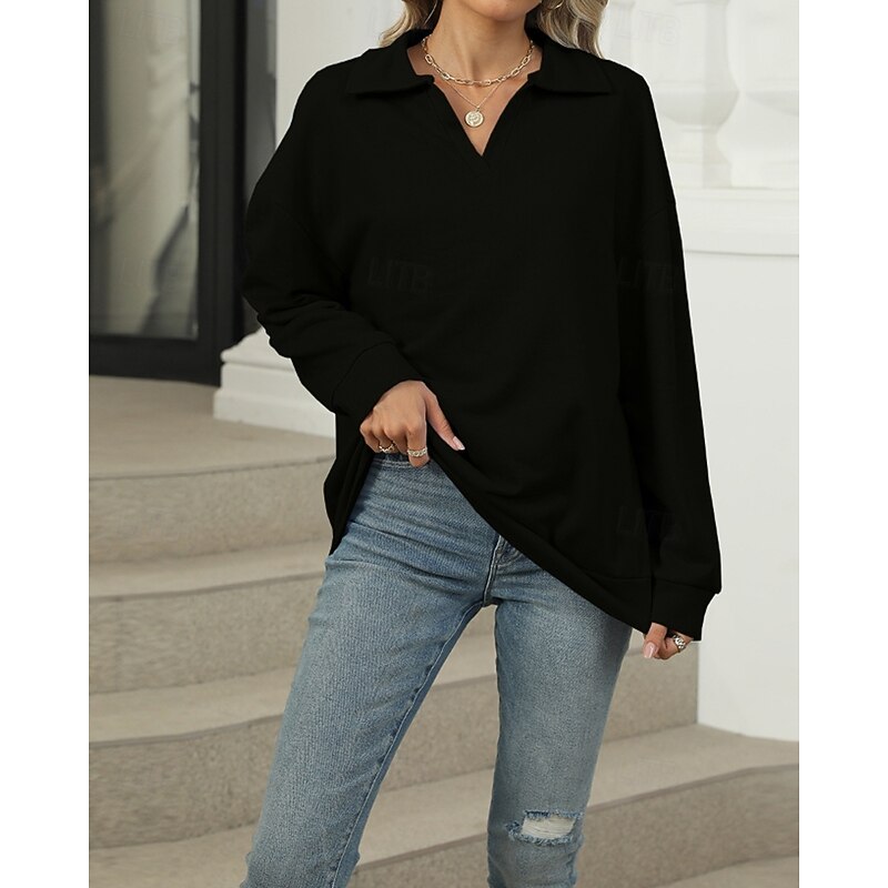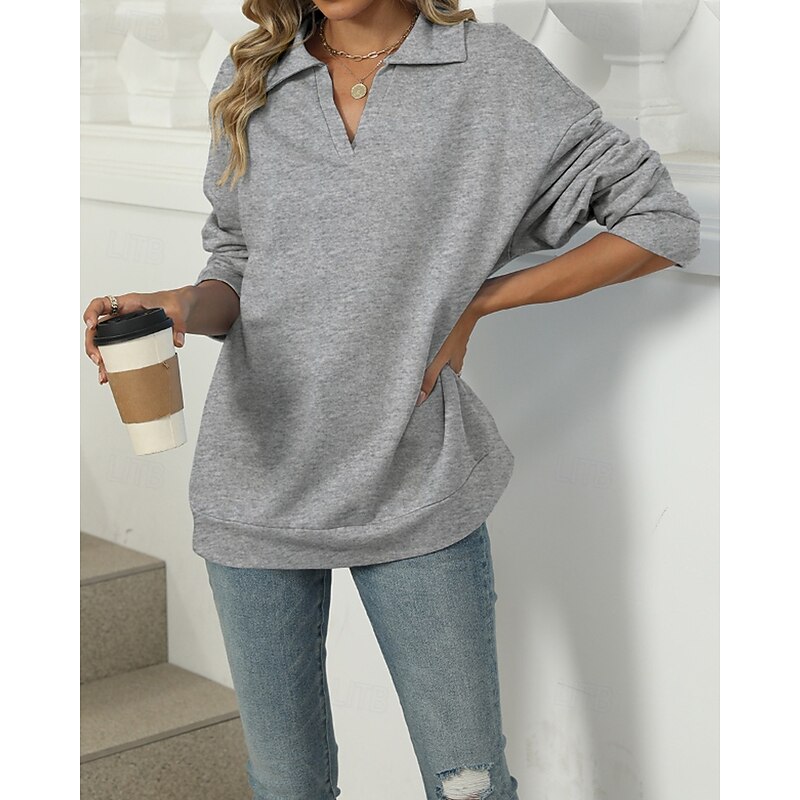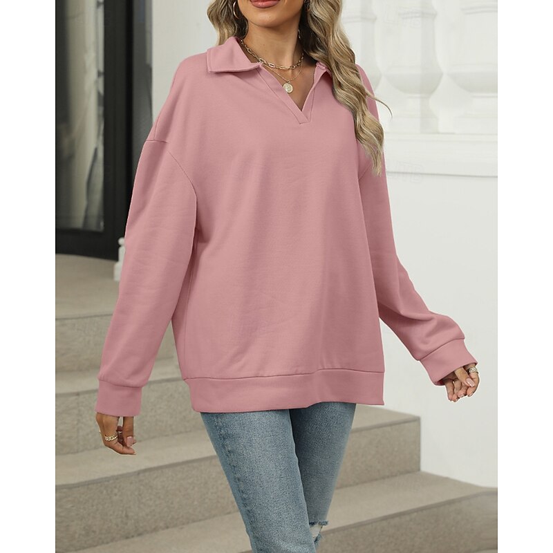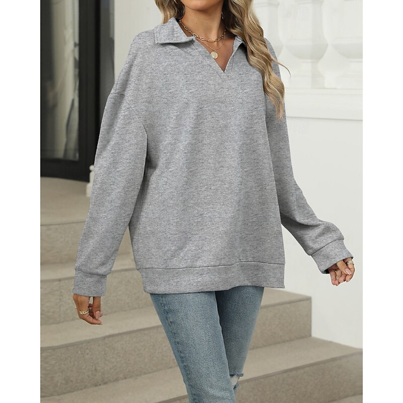 Women's Pullover Sweatshirt Sweatshirts Plain Streetwear Casual Long Sleeve V Neck Regular Tops Street Holiday Going out Black Pink Light Grey Light Blue Fall Winter 24