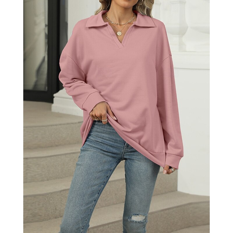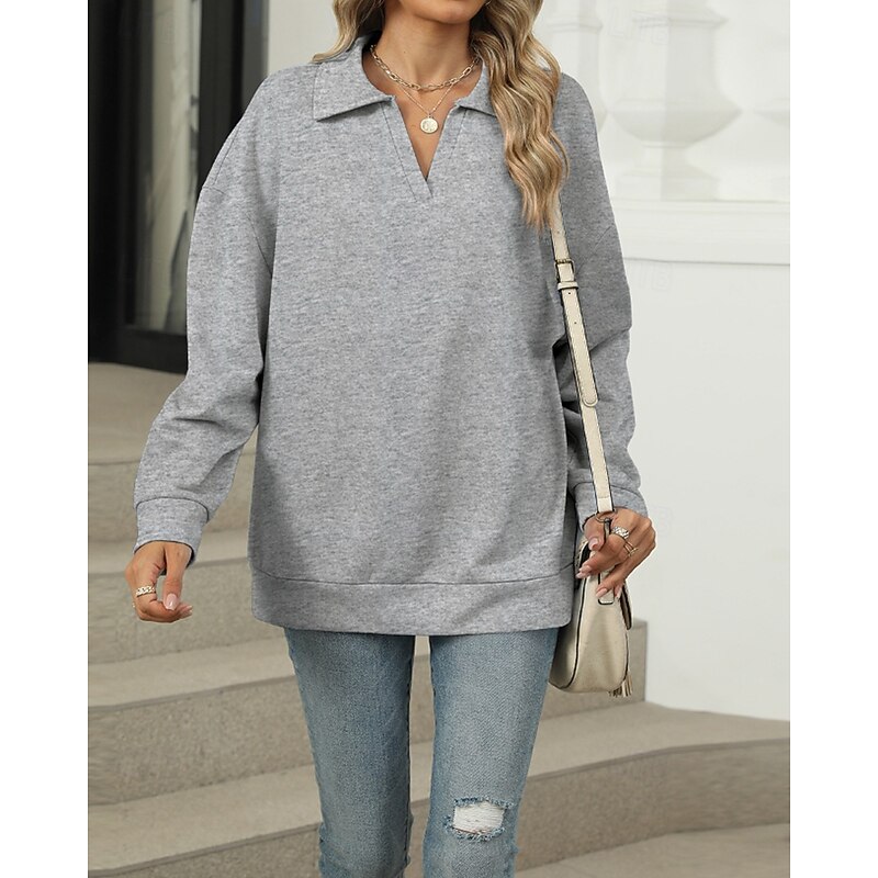 Women's Pullover Sweatshirt Sweatshirts Plain Streetwear Casual Long Sleeve V Neck Regular Tops Street Holiday Going out Black Pink Light Grey Light Blue Fall Winter 25