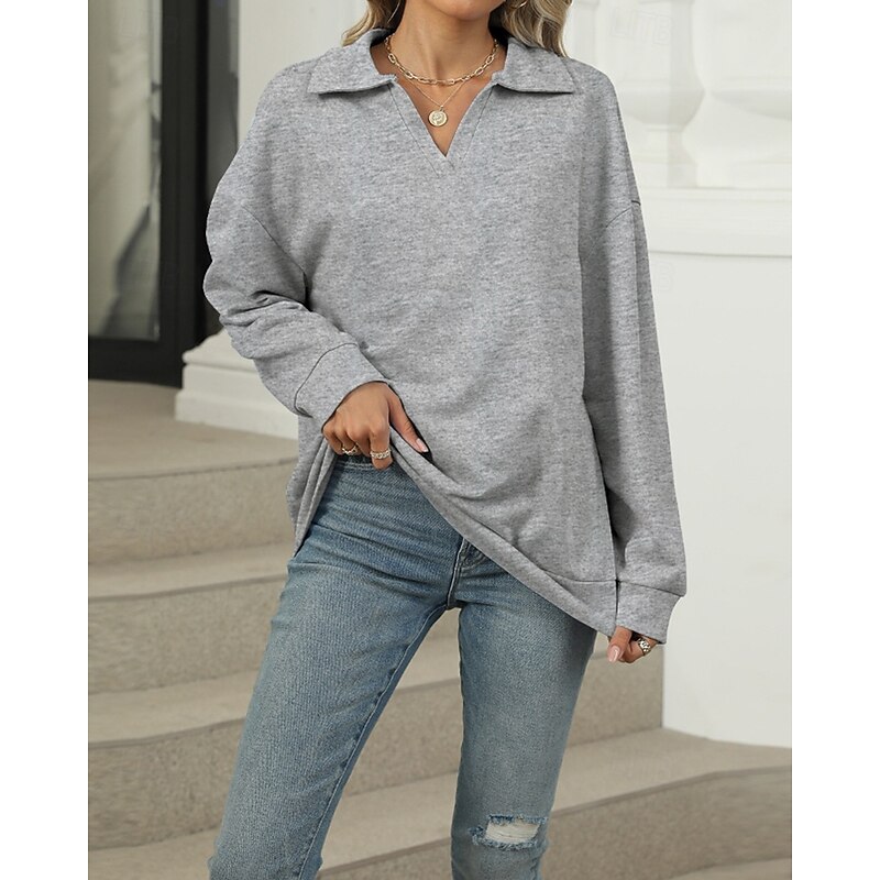 Women's Pullover Sweatshirt Sweatshirts Plain Streetwear Casual Long Sleeve V Neck Regular Tops Street Holiday Going out Black Pink Light Grey Light Blue Fall Winter 9