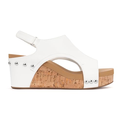 PARTY Women's Wedge Sandals With Buckle Ankle Strap for Dressy Summer, Kally-White PU-9