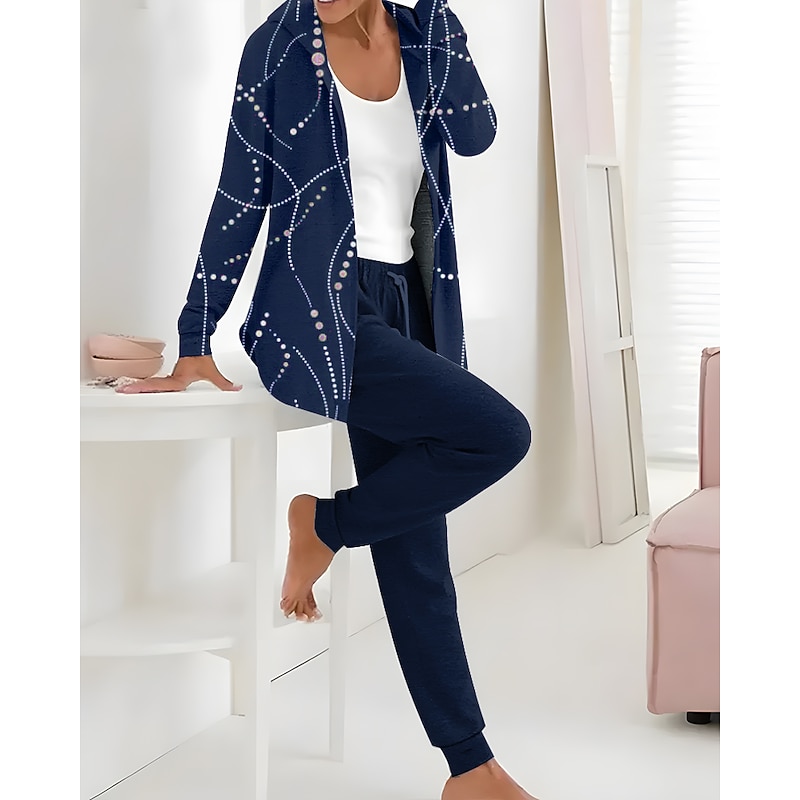 : Designed with a regular fit, this women's tracksuit set includes a hooded top and matching pants, offering an active style that's ideal for daily wear. The drawstring waist on the pants allows for an adjustable fit, catering to personalized comfort.
