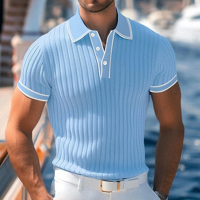 More information about Men's Polo Shirts Muscle Shirt Work Casual Lapel Ribbed Polo Collar Short Sleeve Basic Modern Color Block Patchwork Pocket Spring & Summer Slim Fit Light Blue White Burgundy Navy Blue Gray Polo Shirts