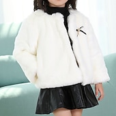 Toddler Girls' Faux Fur Coat Solid Color Active School Coat Outerwear 7-13 Years Winter Light Blue Pink khaki 18