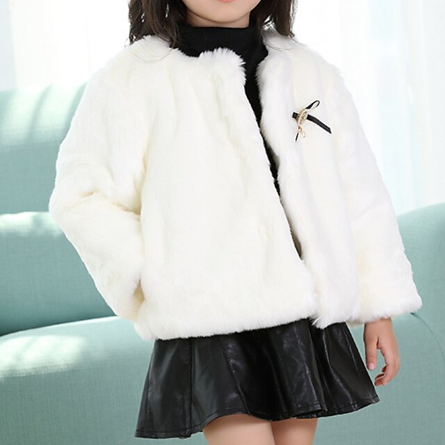 Toddler Girls' Faux Fur Coat Solid Color Active School Coat Outerwear 7-13 Years Winter Light Blue Pink khaki 6