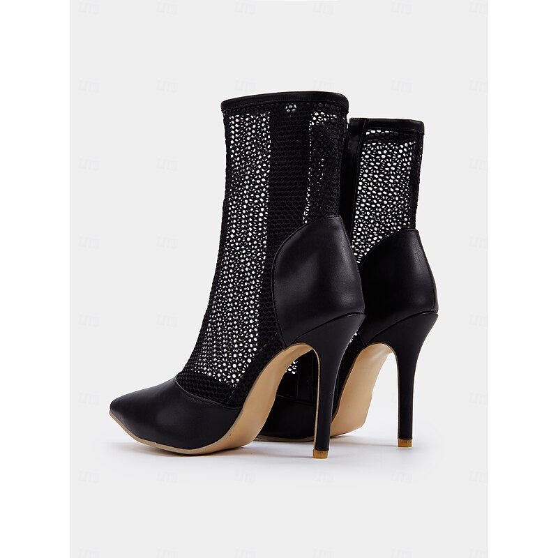 Women's Black Mesh Stiletto Ankle Boots with Pointed Toe and Zip Closure - Sexy High Heel Booties for Evening Events and Parties