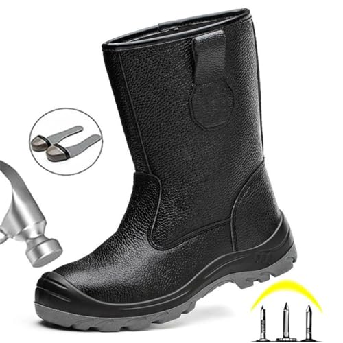 Men's Waterproof Mid-Calf Boots Safety Shoes Work Leather Boots Anti-Smash Anti-Puncture Industrial Shoes Protective Boots 7