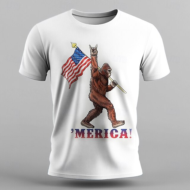 More information about Veterans Day Men's Patriot Patriotic Veteran Orangutan American US Flag T shirt Short Sleeve T shirt 3D Print Crew Neck Shirt Fashion Athleisure Street Sports Outdoor Daily Black White Summer Spring