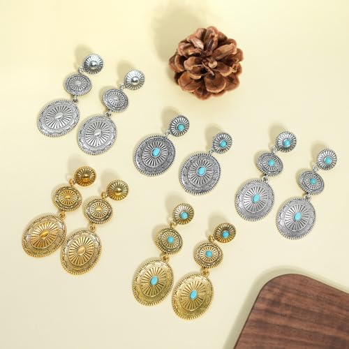 Vintage Western Earrings for Women Boho Vintage Silver/Gold Turquoise Earrings for Women Western Statement Jewelry for Country Concert Outfits