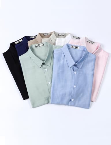 ZEROYAA Men's Casual Short Sleeve Button Down Shirt Vacation Beach Summer Lightweight Textured Shirts 6