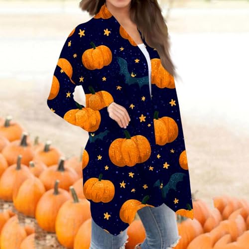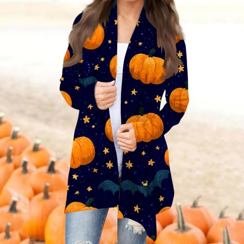 Halloween Cardigan for Women 2025 Fall Open Front Pumpkin Ghost Print Sweater Fashion Long Sleeve Lightweight Coat 7