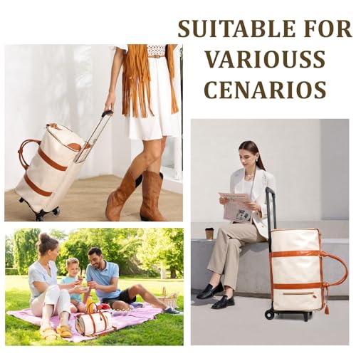 HOT ! Rolling Garment Bag for Travel, Large Convertible Duffel Bag with Wheels – Foldable PU Leather Carry-On Luggage, Wrinkle-Free Hanging Compartment, Travle Jenni Bags for Women Men (Beige)