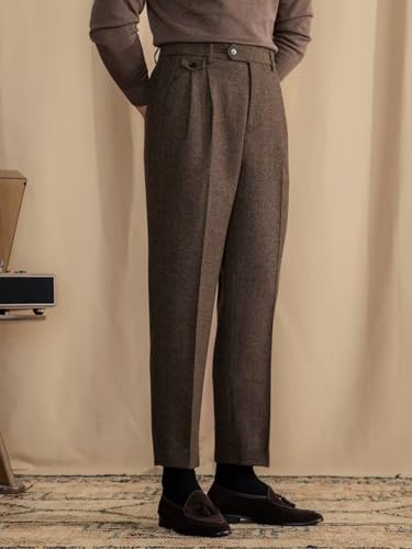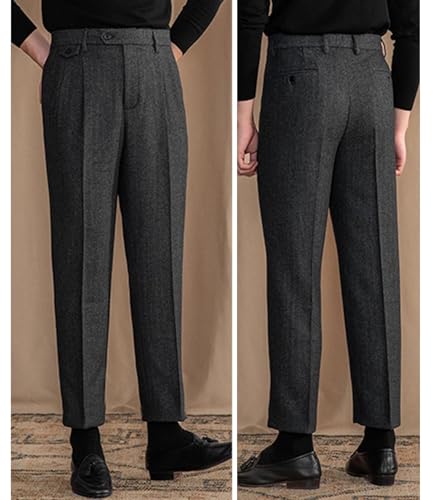 • FEATURES: Herringbone pattern tweed trousers, double pleated dress pants, regular fit, straight fit, zipper closure, casual pants and business dress pants