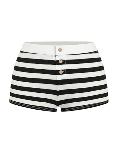 HOT ! ZAFUL Women Y2K Lounge Shorts Bear Print Skinny Pajama Bottoms Elastic Button Front Sleep Shorts