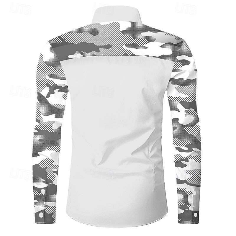 Men's Camouflage Western Shirt Long Sleeve Western Sports Outdoor Spring Fall Turndown Button Up 2 Pockets White Blue Brown Green 6