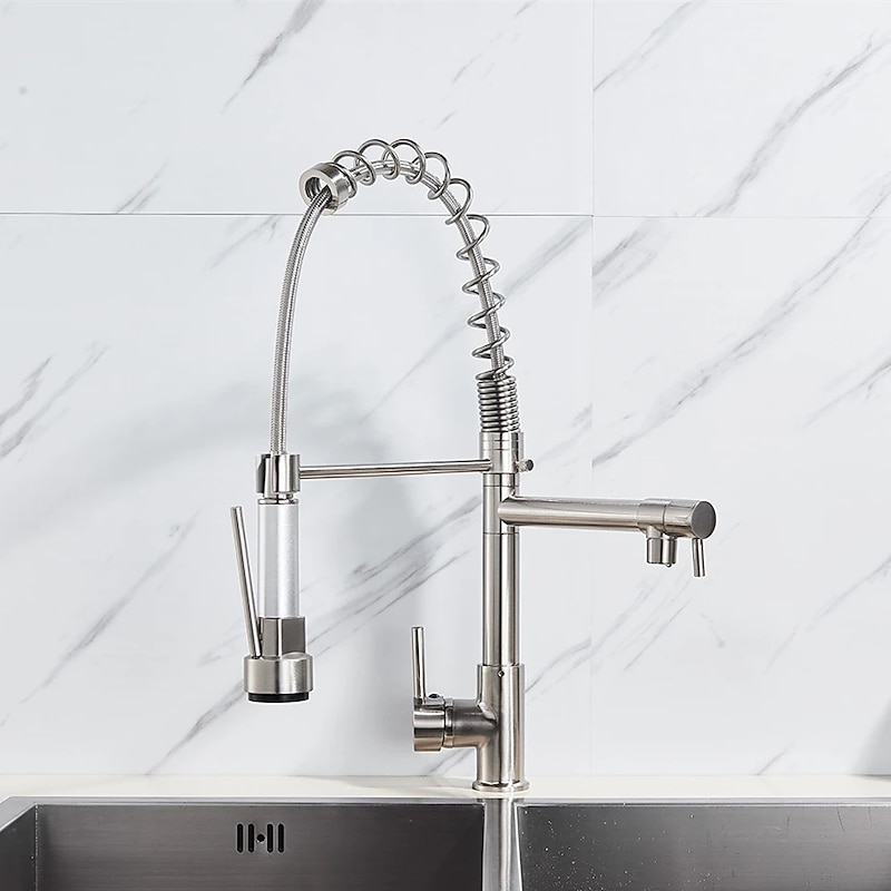 Kitchen Faucet,Brass Chrome Deck Mounted Pullout Spray Contemporary Kitchen Taps with Hot and Cold Switch 2