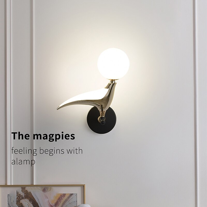 Modern Bird Lovely Wall Light Nordic Brotate Bird Bedside Foyer Wall Sconce Art Bedroom Bedside Wall Lamp Home Decor 12