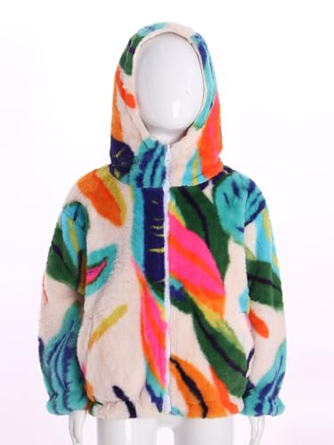 • Girl's faux fur hooded jacket with cute prints and bright colors is eye-catching enough to make your child the center of attention in the crowd