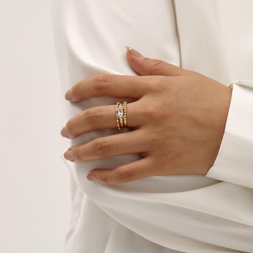 HOT ! Otxas Dainty Gold Rings for Womem 14k Gold Plated Stackable Ring for Women Size 6-11 Cubic Zirconia Gold Rings Set Wedding Rings