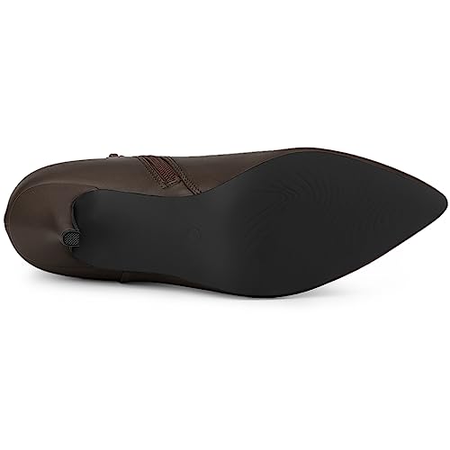 Allegra K Women's Pointed Toe Zipper Stiletto Heel Coffee Ankle Boots 7 M US 2