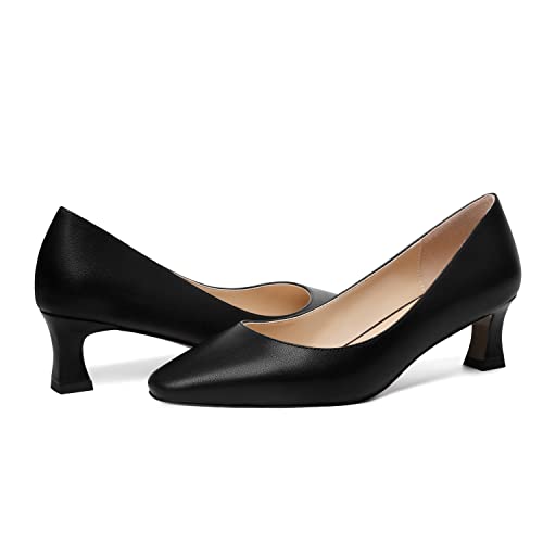 NUMALEO Womens Matte Dress Solid Square Toe Slip On Dating Spool Low Heel Pumps Shoes 2 Inch