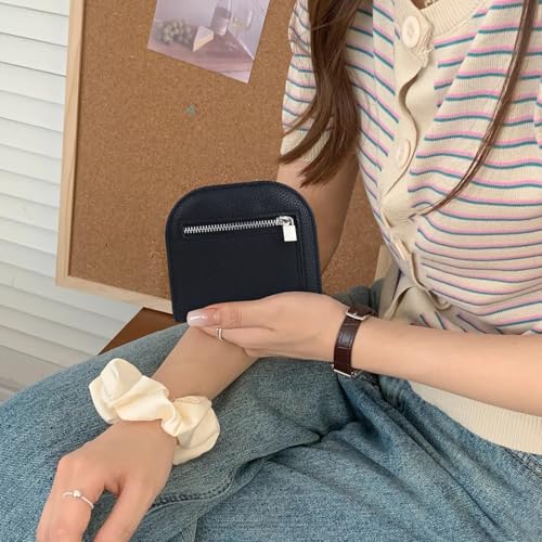 Small Wallet for Women, Ladies Leather Bifold Coin Purse, Cute Mini Change Purses with Zipper Pocket Card slots (Black) 5