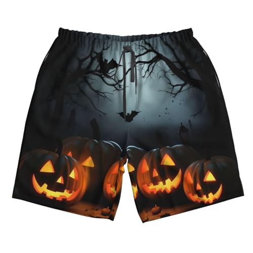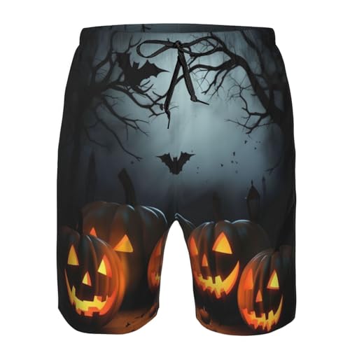 HOT ! Halloween with Pumpkins Men's Swim Trunks Quick Dry Board Shorts with Pockets Casual Drawstring Beach Shorts