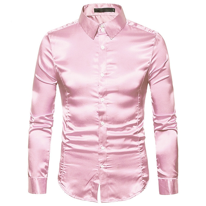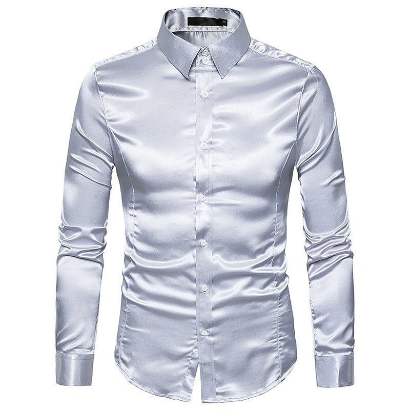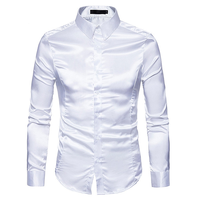 More information about Men's Dress Shirt Collared Shirt Button Up Shirt Prom Shirt Satin Silk Shirt Plain Wedding Party Navy Black White Yellow Long Sleeve Collar Clothing Apparel