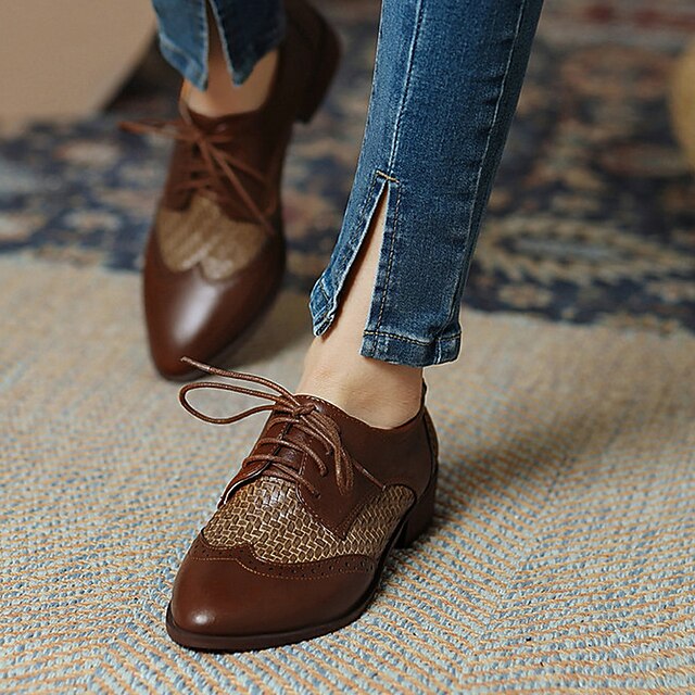 More information about Women's Oxfords Brogue Plus Size Wingtip Shoes Outdoor Daily Solid Colored Low Heel Chunky Heel Pointed Toe Elegant Casual Minimalism PU Leather PU Lace-up Black Brown