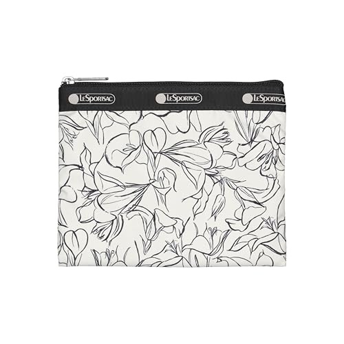 • LeSportsac Sketched Floral Ivory enduring Hobo Crossbody Bag + Cosmetic Bag, Style 7520/Color H106, current & Artsy Abstract Sketch Inspired Flowers in Sleek Black & Neutral Ivory, Trendy Wearable Art