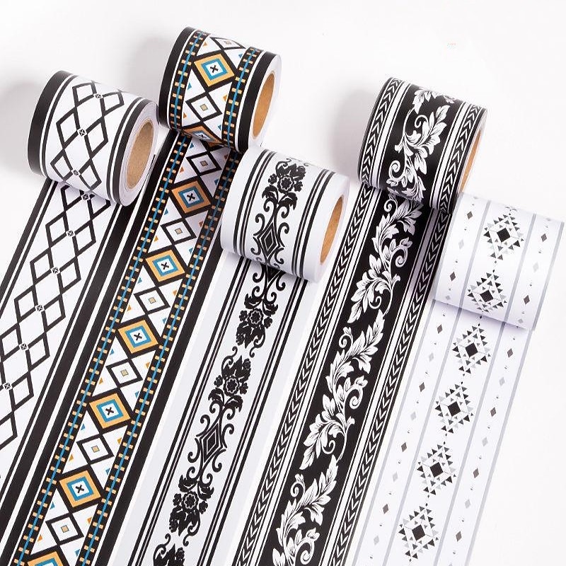 HOT ! Cool Wallpapers Geometric Wallpaper Border Waistline Wall Mural Peel and Stick Self Adhesive PVC/Vinyl Modern Wall Decal for Room 12x500cm/4.72''x196.8''