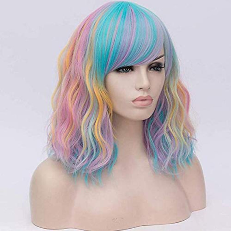$27.99 - Mixed Color Wigs for Women Gothic Wig Evaner Wavy Wig Short Bobo Wigs with Air Bangs Shoulder Length Women's Wig Curly Wavy Synthetic Cosplay Wig Pastel Bob Wig for Girl Wigs Halloween Wigs 2025. Shop for cheap Carnival Wigs online? Buy at lightinthebox.com on sale today!