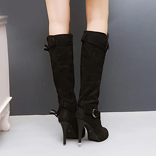Hbeylia Stiletto High Heels Boots For Women Ladies Fashion Slouchy Metal Buckle Ruched Suede Round Toe Platform Wedge Dress Pump Slip On Mid Calf Boots Slouch Casual Winter Fall Long Tall Boots