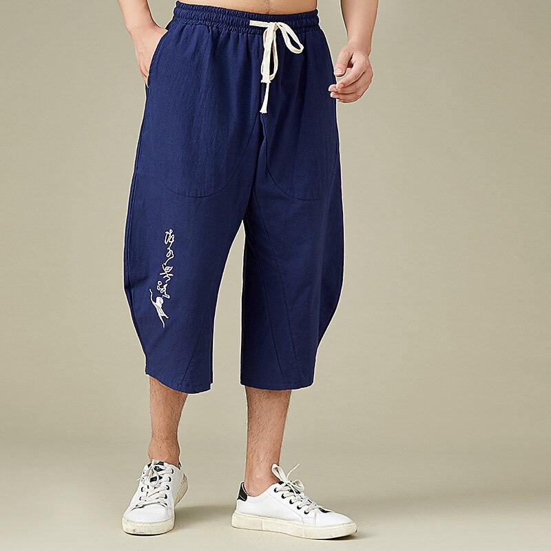 More information about Men's Trousers Linen Shorts Summer Shorts Bloomers Beach Shorts Embroidered Pocket Drawstring Embroidery Comfort Breathable Casual Daily Beach Linen / Cotton Blend Fashion Streetwear Black White