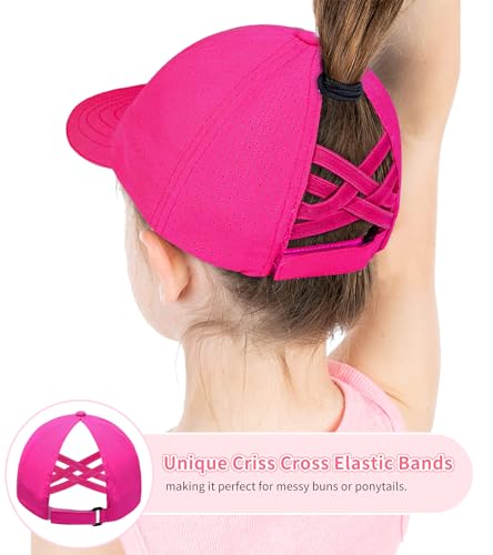 New Updated Girls Criss Cross Ponytail Hat Reflective Baseball Cap Waterproof Quick Dry Summer Sports Hats for Kids Age 7-12 5